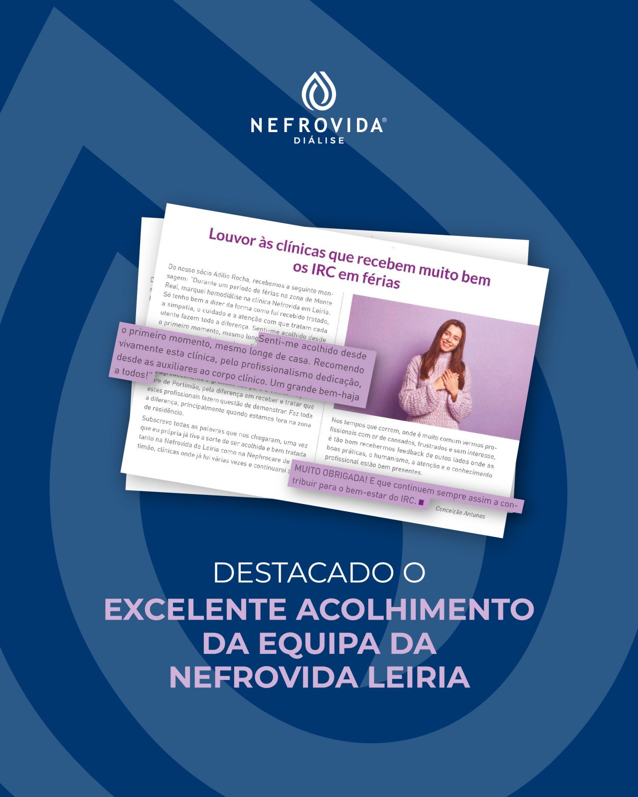 A revista Nefrâmea destacou, na sua edição trimestral de Abril–Junho de 2025, a Unidade de Diálise Nefrovida Leiria pelo seu acolhimento exemplar aos doentes que realizam tratamento durante o período de férias, salientando a empatia, o profissionalismo e a atenção de toda a equipa.